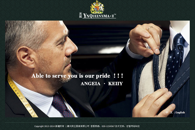 “YNQUEEN′SMA•Ⅱ”英王是一個來自英國的服裝品牌,品牌創始人是英女王伊莉莎伯2世的皇家禦用裁縫師及形象顧問“ANGEIA • KEIIY”, “ANGEIA • KEIIY”以她獨有的細膩情感和大膽設計方式深得女王青睞。“YNQUEEN′SMA•Ⅱ”英王以男女高級成衣、頂級時裝、行政套裝爲主導産品和一流的服務進入中國市場。