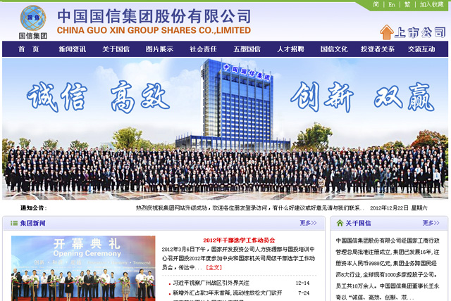 中國國信集團股份有限公司經國家工商行政管理總局批準注冊成立,集團已發展16年,注冊資本人民幣9988億元,集團業務跨國民經濟8大行業,全球現有1000多家控股子公司。員工共10萬余人。中國國信集團董事長王永奇以“誠信、高效、創新、雙贏”為經營宗旨。多年來一直被工商行政管理部門評為“守合同重信用企業”。現公司主要經營項目: 建筑工程,市政工程,室內外裝飾工程設計及施工;房地產開發,物業管理;物業代理;項目投資;金融服務;融資擔保;融資租賃;貸款服務;信用擔保;證劵投資;證劵咨詢;各類信息咨詢;企業登記代理;稅務代理;代理記賬;財務服務;商業批發零售;電信通訊工程;網絡工程;日用百貨、電子電器、燈具燈飾、化學品、計算機及配件、辦公用品、化妝品、文體及旅游用品、節能環保產品的研發、銷售及生產。汽車及配件生產制造。組織策劃大型文藝演出;舞臺音響及燈光設計安裝;禮儀服務;商務服務;汽車租賃。設計、制作、代理及發布國內外各類廣告;商務服務,汽車租賃,國際旅游。模特經紀、模特培訓、文化傳媒、影視制作;電影電視劇拍攝、制作、發行等。