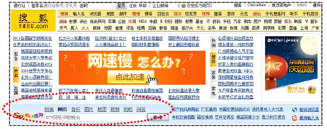 2、在搜狐門戶網站sohu.com首頁的搜索入口: